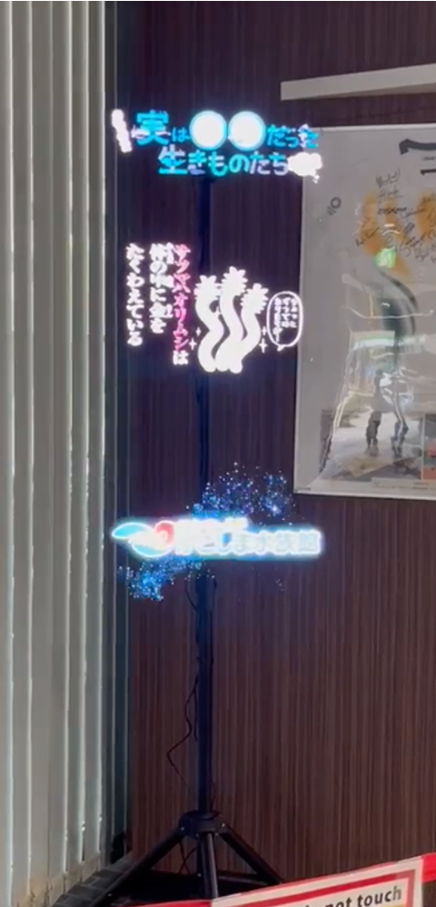 ◼️内容:特別企画展で紹介している内容を3D化し、3Dホログラムで文字ごと、ふわふわ浮いている映像として演出を行いました。