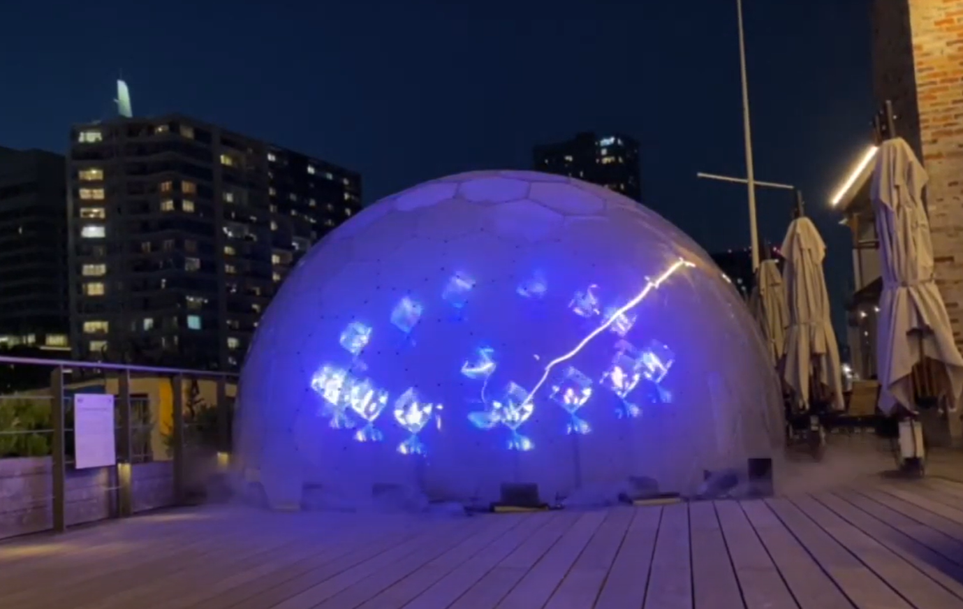 天王洲アイルで開催されるTENNOZ CANAL FESでは、3Dホログラムが効果的に導入されています。ドーム状のオブジェクトの中に、3Dホログラムで映像を映し出しています。