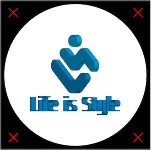 表示されるのは、下の図の白い円内のみです。この円内にオブジェクトを収めることが、効果的な映像演出のポイントです。