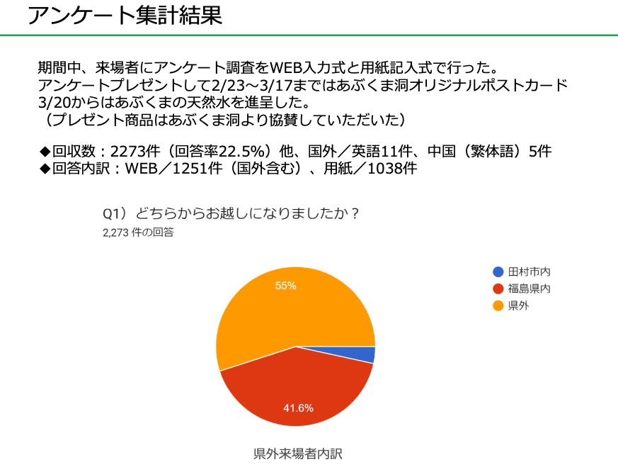 福島県田村市滝根町"あぶくま洞"(鍾乳洞)「音と光が織りなす幻想世界」のアンケート集計結果のお知らせ